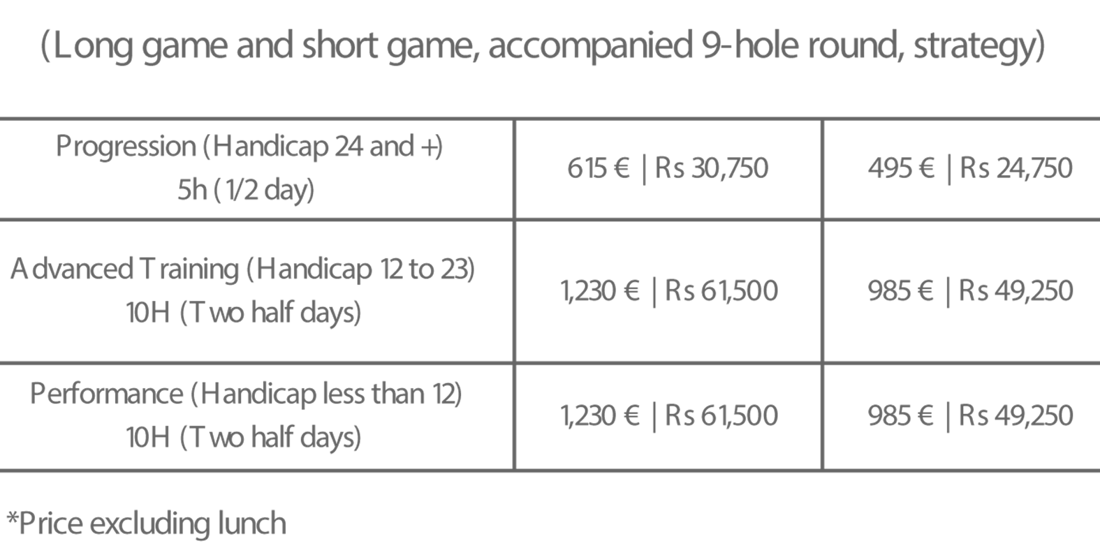 - Accompanied Course Sessions: Intensive training over two 9-hole rounds, analyzing each shot with a focus on course management, following the approach Thomas Levet used in high-level competitions.