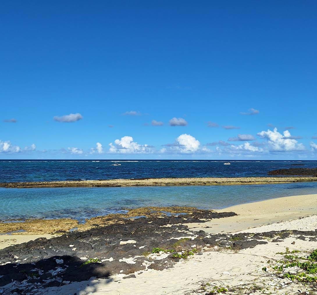 Visible from the shore lies the weathered remains of an ancient barrier reef—once teeming with marine life, now a fossilized testament to the ocean’s past. Long ago, it provided the limestone used in local building traditions.